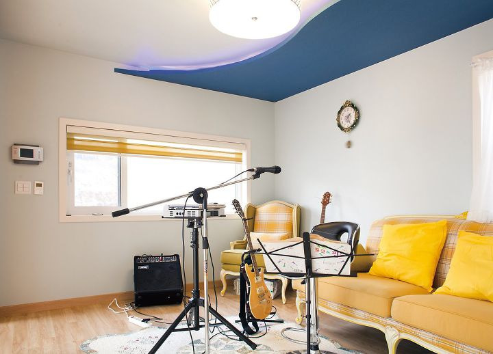 기타와 음향 시설을 갖춘 가족실은 가족 음악회를 여는 무대이다.