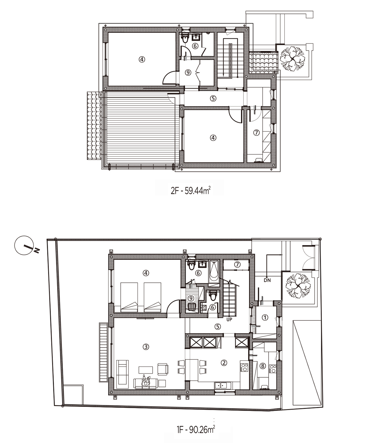 PLAN ① 현관 ②주방/식당 ③거실 ④침실 ⑤복도 ⑥욕실 ⑦창고 ⑧다용도실 ⑨드레스룸