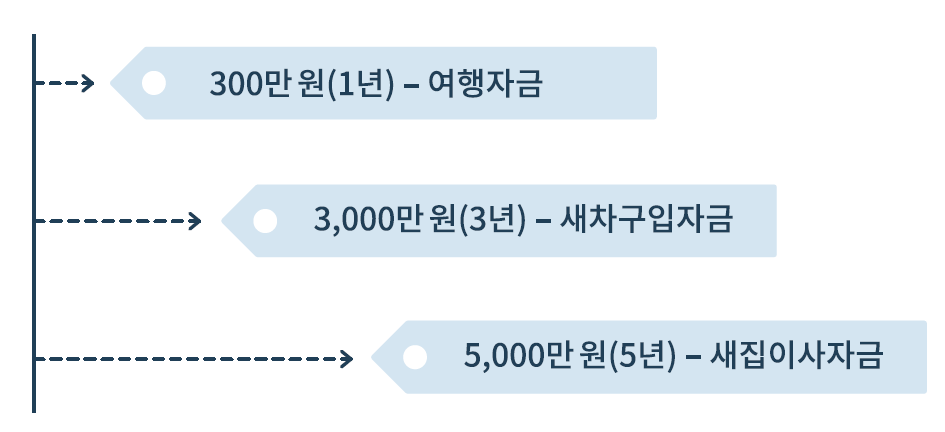 이처럼 목표 금액의 사용 용도에 따라 자금 운용 방식이 달라질 수 있습니다. 따라서 목표를 세울 때는 사용 용도를 미리 정해야 적절한 운용 계획을 세울 수 있습니다.
