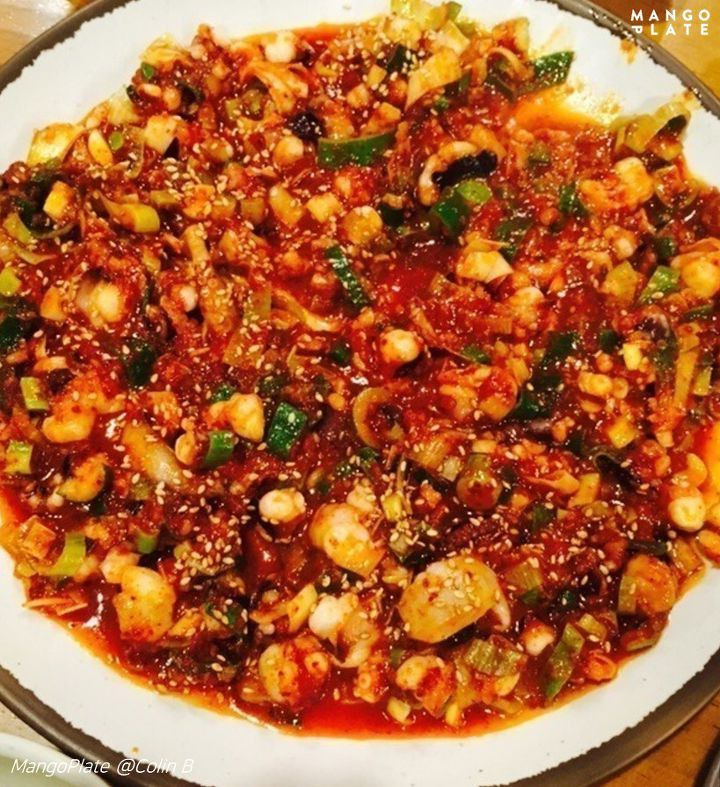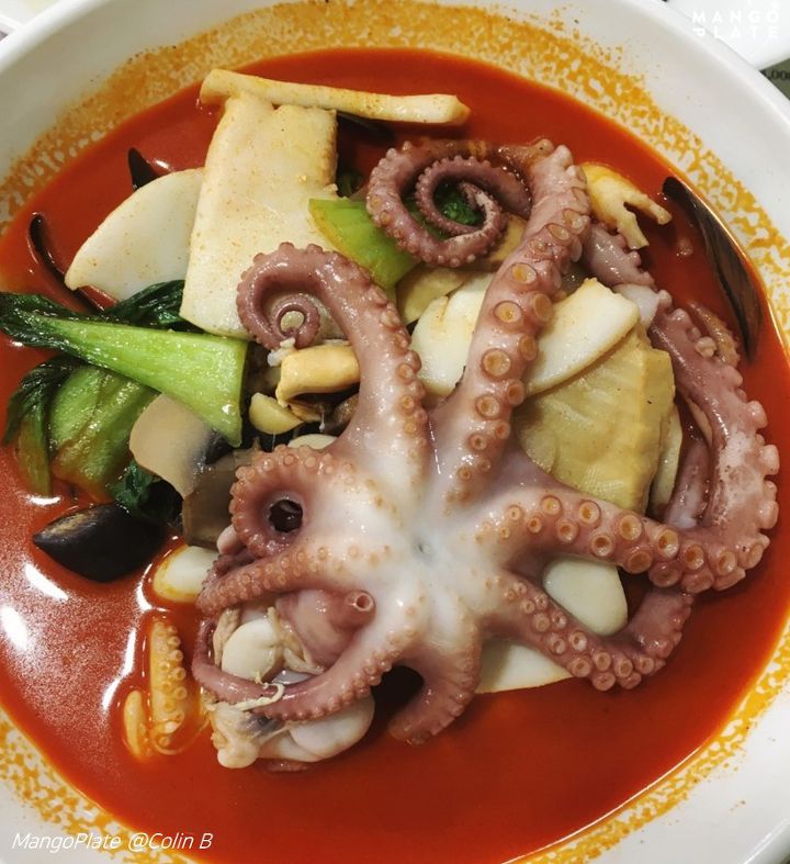 여기 진짜 대박. 이 근방에서 오랫동안 일하면서 어떻게 여길 몰랐지 싶었다. 큼지막한 낙지 한 마리를 통째로 넣어주고, 두툼하게 썰어 넣은 오징어, 소라, 홍합을 듬뿍 넣고, 청경채, 양파, 죽순으로 마무리. 국물도 너무 맵지 않은 정도!