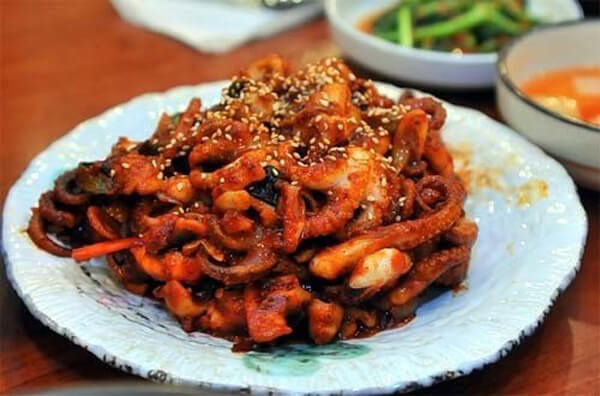 만석공원 근처에 위치한 그집쭈꾸미볶음은 불 맛나는 주꾸미볶음으로 수원에서 항상 인기가 많은 곳 중의 하나다. 주말에는 늦은 저녁 시간에도 매운맛을 입안 가득 채우는 주꾸미를 먹으려는 사람들로 북적인다. 한번 맛을 보면 입이 좀 느끼하거나 화끈하게 매운맛을 느끼고 싶을 때마다 1순위로 떠오르는 곳. 주꾸미볶음을 시켜도 밥은 별도라 공깃밥을 1,000원 주고 따로 시켜야 한다는 불편함이 있지만, 쌀밥과 보리밥 중의 하나를 선택할 수 있다. 주꾸미볶음에 밥 비벼 먹을 때 넣어 먹으면 좋을 정갈한 밑반찬들과 보글보글 끓는 된장찌개까지 모두 환상의 콜라보를 자랑한다. 특히 숯불 향이 강하게 나는 칼칼한 주꾸미볶음에 콩나물과 무생채를 넣고 밥과 야무지게 비벼 먹으면 눈 깜짝할 새 밥 한 공기를 뚝딱 사라져버리는 마법을 경험할 수 있을 것이다.