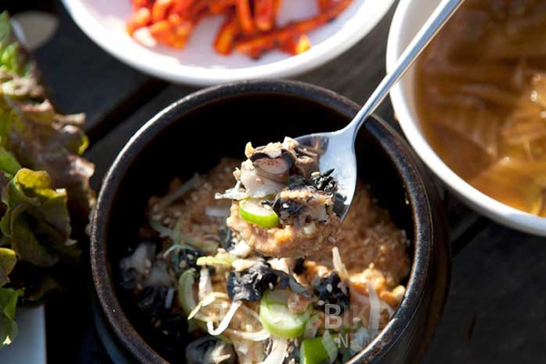 | 이곳 쌈채소는 양평 두물머리 유기농 단지에서 직접 농사지어 공수하므로 벌레 먹은 그대로 올라오기도 한다. 사진/ 한국관광공사 |