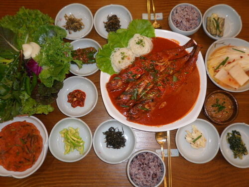 순천 현지인 맛집으로도 알려져 있는 이곳에서는 돼지고기 쌈밥부터 매콤달달한 양념의 고등어 쌈밥, 정어리 쌈밥, 쭈꾸미 쌈밥까지 다양한 메뉴가 있다. 걸쭉하고 진한 양념이 가득 들어 있는 고등어조림도 인기 있으며 돌판에 담겨 나오는 쭈꾸미가 들어간 돼지 불고기도 훌륭한 밥반찬이 된다. 채소와 나물 등을 포함한 밑반찬들도 가짓수가 꽤 많으며 쭈꾸미 돼지고기와 갈치구이, 고등어구이 등의 메뉴를 추가 주문할 수 있다. 어렵지 않게 볼 수 있는 메뉴들이지만 푸짐하고 정겹다.