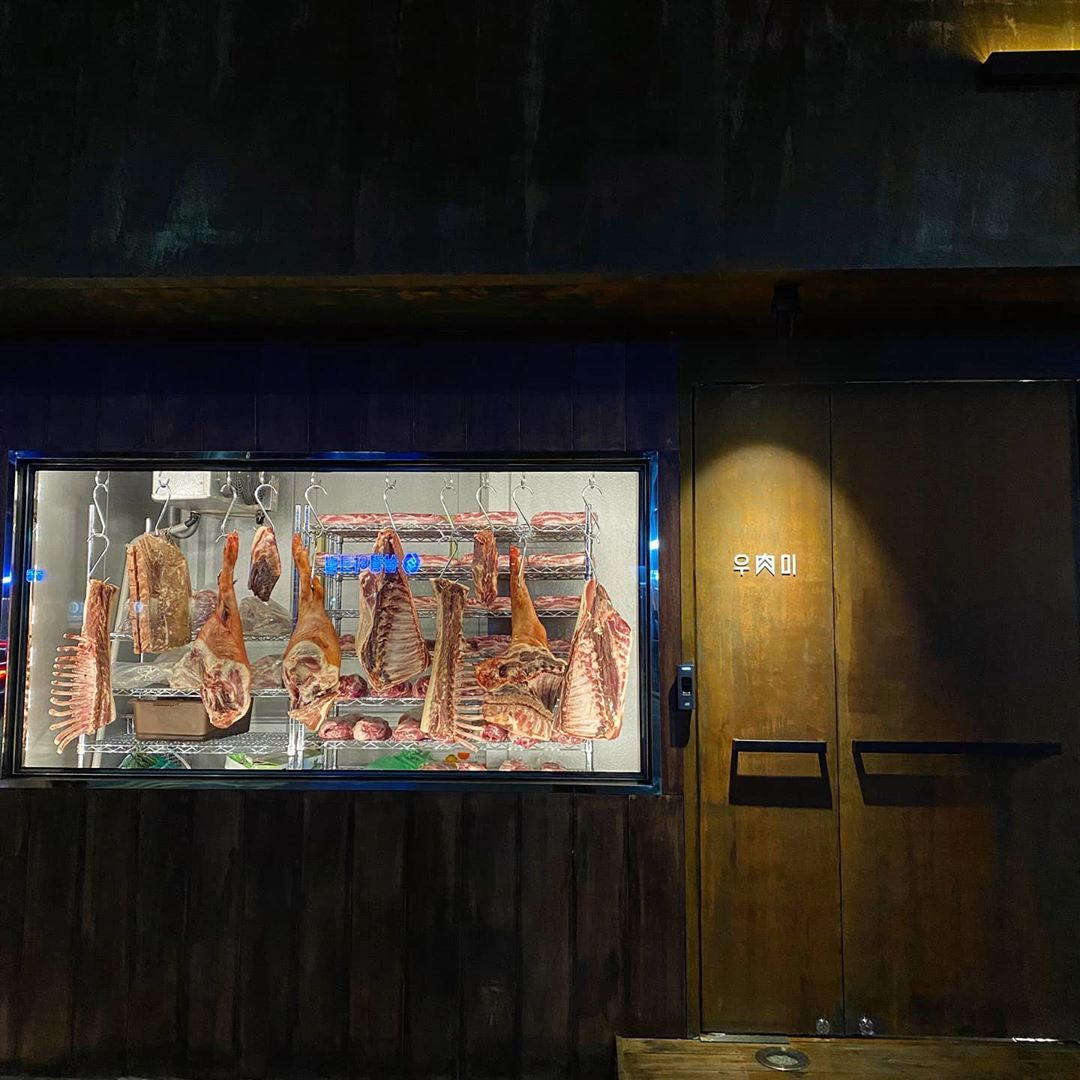 정육처럼 고기가 주렁주렁 매달려 있는 ‘우육미’의 쇼윈도는 지나가는 사람들의 발걸음을 붙잡을 만큼 인상적이다. 합리적인 가격으로 스테이크를 만나볼 수 있어 많은 인기를 끌고 있다. 대표 메뉴는 T자 모양의 뼈를 중심으로 안심과 채끝 등심이 붙어 있는 ‘우미살’. 두툼한 티본 스테이크는 로즈메리, 통후추, 마늘분, 양파분 등 6가지 건시즈닝으로 양념을 한 뒤 숯불에서 초벌구이하여 제공한다. 테이블에서 무쇠 프라이팬에 버터를 두른 뒤 2차로 한 번 더 구워 완성한 우미살은 은은하게 스며든 버터 풍미와 고소한 감칠맛이 살아있다. ‘깍두기 볶음밥’, ‘해물 짬뽕’ 등 고기로 기름진 입맛을 달래 줄 식사 메뉴도 즐겨 찾는다.