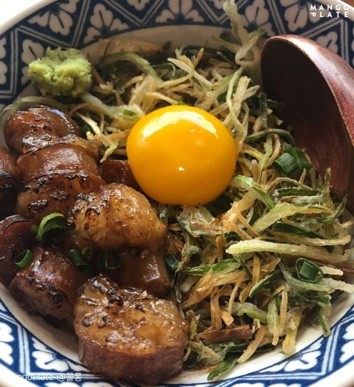 송리단길의 단디를 소개합니다. 웨이팅이 기본 30분~1시간일 정도로 유명세가 장난 아닌데요! 유명한 호르몬동과 우나기동은 일일 50개 한정 판매라고 해요.(흑흑) 이곳의 대창 덮밥은 숯불에 구워 대창에 숯불 향을 입힌 게 특징이에요. 양념도 골고루 잘 배어져 있어 감칠맛이 살아있죠! 그래서 자꾸 생각나는 맛이랍니다.