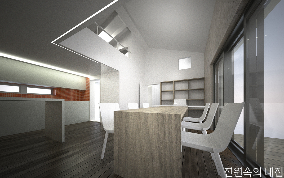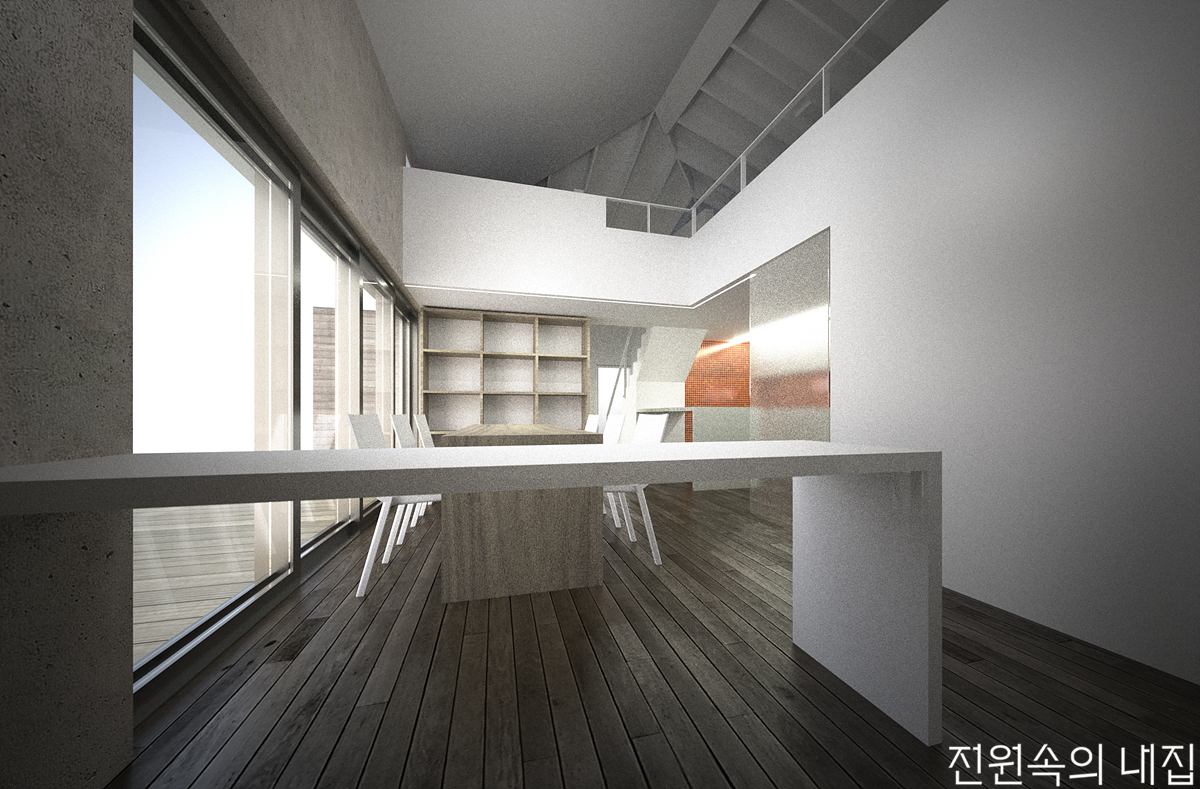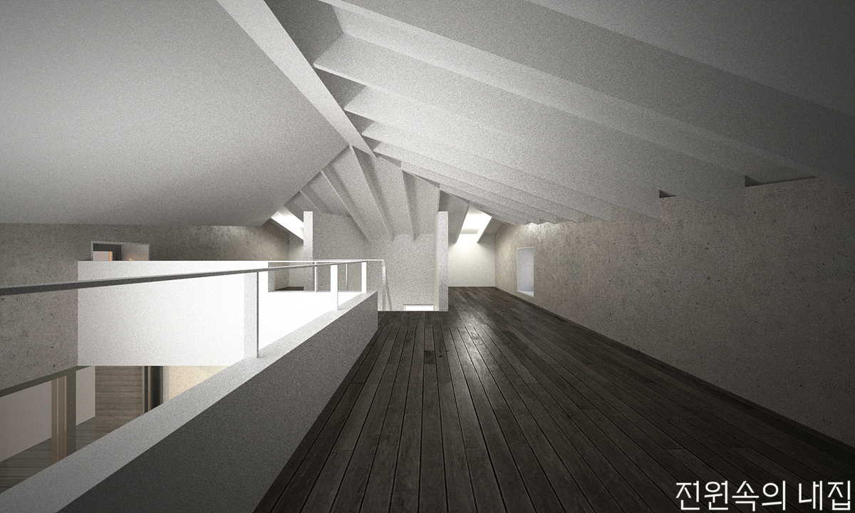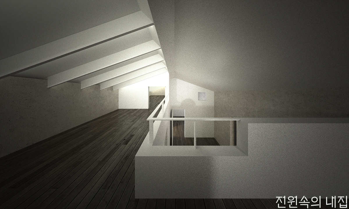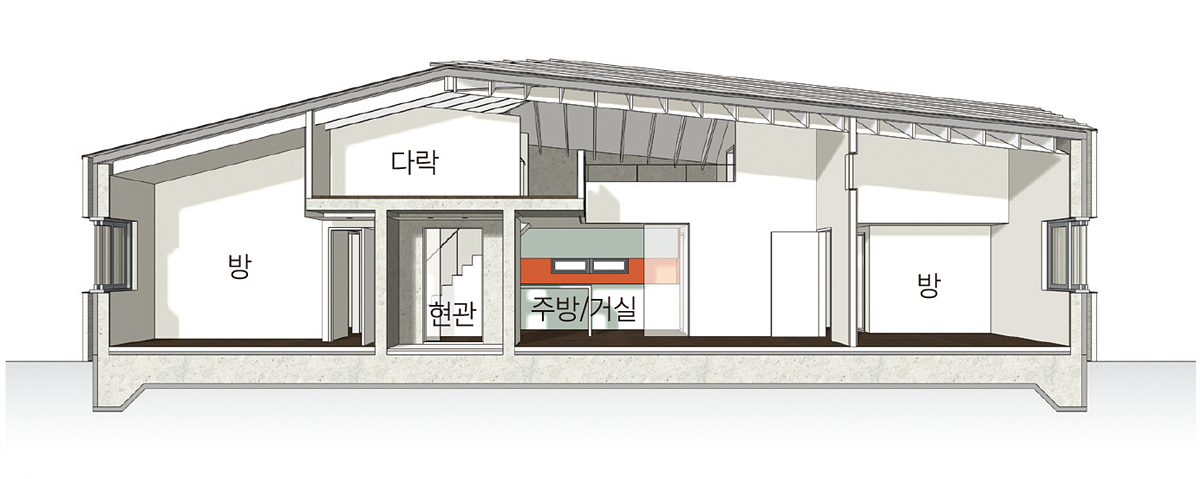 국민주택 규모로 행정적 혜택은 취하되, 실내 면적을 충분히 확보하기 위해 다락을 적극적으로 활용했다. 법적으로 바닥 난방이 불가능하고 거실의 역할을 못 하도록 되어 있지만, 50m2가 넘는 면적은 다목적 공간으로서의 가능성을 내포한다.