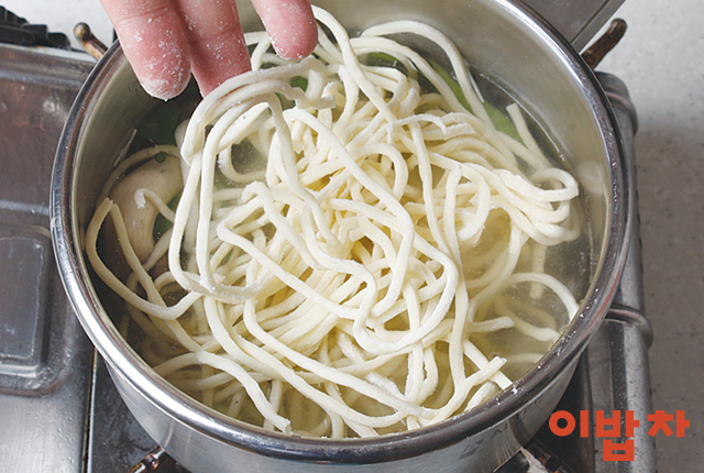 6. 준비한 재료를 모두 먹으면 칼국수 면을 넣고 끓여 마무리.