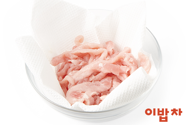 1. 돼지고기는 키친타월에 올려 핏물을 빼고,