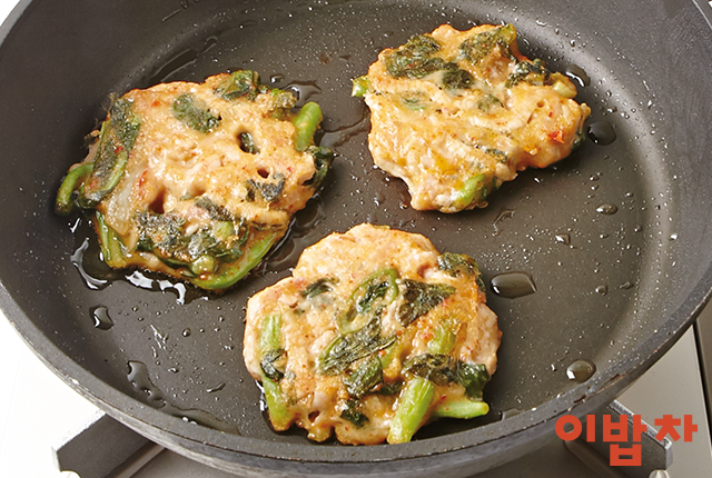 5. 중간 불로 달군 팬에 식용유를 넉넉히 두르고 반죽을 얹어 앞뒤로 노릇하게 구워 마무리.