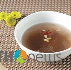 ➌ 완성된 식혜에 잣을 띄워 상에 낸다.