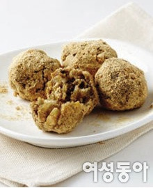 4 밥이 뜨거울 때 간장과 설탕, 참기름을 넣고 버무린 뒤 동그랗게 뭉쳐 콩가루를 묻힌다.