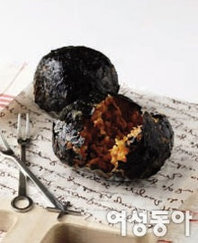 4 뭉친 밥을 김봉지에 담고 꼭꼭 눌러 김가루를 고루 묻힌다.