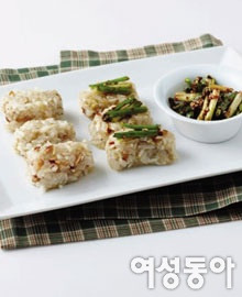 찹쌀 1컵, 차조 3큰술, 물 ¾~1컵, 배 ½개, 수삼 2뿌리, 도라지 3뿌리, 대추 3개, 실파양념장(다진 실파 1컵, 고춧가루·통깨·참기름 ½큰술씩, 간장 2큰술, 다진 마늘 ½작은술)