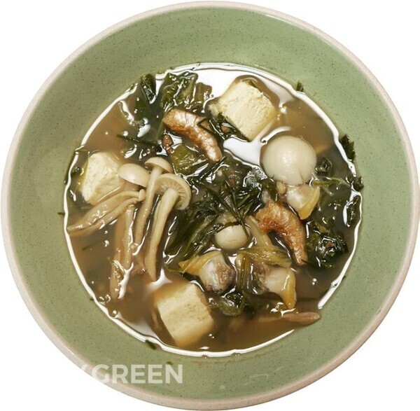 멸치, 디포리 육수 1천cc, 된장 2큰술, 다진 마늘 1/2큰술, 봄동(얼갈 이 배추 가능) 150g,, 보리순 30g, 냉동 바지락살 100g, 두부 150g, 보리 새우 5g, 만가닥 버섯 70g