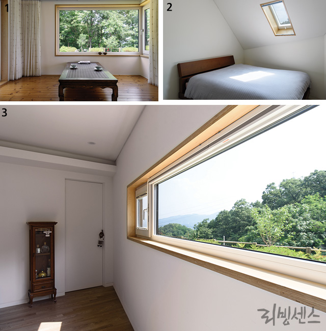 2. 집안 각 공간마다 낸 창의 높낮이와 폭이 각기 다르다. 자연 속에 자리한 집의 모습을