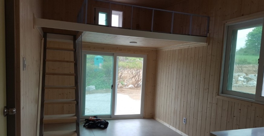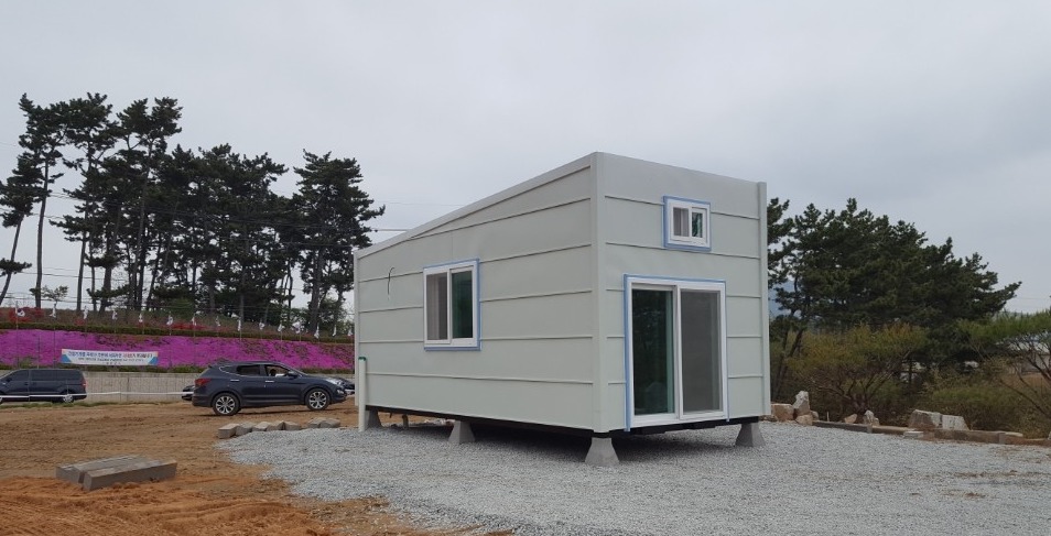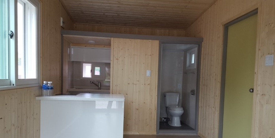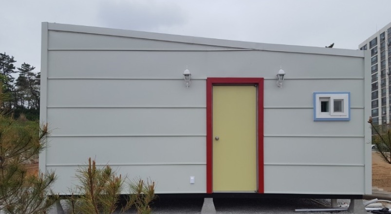 마감 : 모노룸 장판(바닥) / 국내산 방수타일 (화장실) 편백나무(내부) / 징크강판 (외부)
