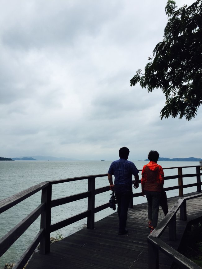 다시 바닷길로 길을 잡아 내려와 조금 걷다보면 망호 선착장으로 이어지는 망호출렁다리가 나온다. 육지와 연결된 두 개의 출렁다리 중 나머지 하나다. 길이 715m로 경사진 게 특징이다. 출렁다리 옆에는 바다 낚시터가 자리잡고 있다. 섬의 반쪽 길이 잘 꾸민 길이라면, 나머지 길은 자연 그대로의 길이다. 지금까지 걸어온 바다와는 다른 바다가 펼쳐진다. 호수같은 바다의 모습에 마음이 돌연 아득해진다. 수초에 반은 몸을 감춘 낚싯배가 찰랑대고, 마을이 펼쳐져 있다. 가우마을이다. 이곳에서 바다의 소리는 아기를 재우는 자장가처럼 낮고 맑고 부드럽다. 한옥펜션, 밀물펜션 등 숙박시설, 바다의 야경을 안주 삼아 즐길 어부 포차도 객을 반긴다. 자꾸 느려지는 발길을 다시 재촉해 걷다보면 황톳길이 나온다. 비가 와도 그닥 질퍽이지 않는 길이다. 오르락 내리락 바다를 옆에 끼고 걷다보면 절경이 펼쳐지는 지점들이 여럿 나와 탄성을 자아낸다. 이렇게 나머지 1km를 걸으면 출발지점, 저두 출렁다리로 돌아온다. 바닷바람이 다시 거칠어진다.