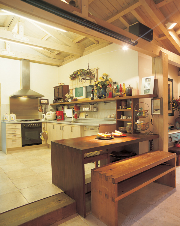 수작업으로 운치를 낸 기둥과 보의 노출