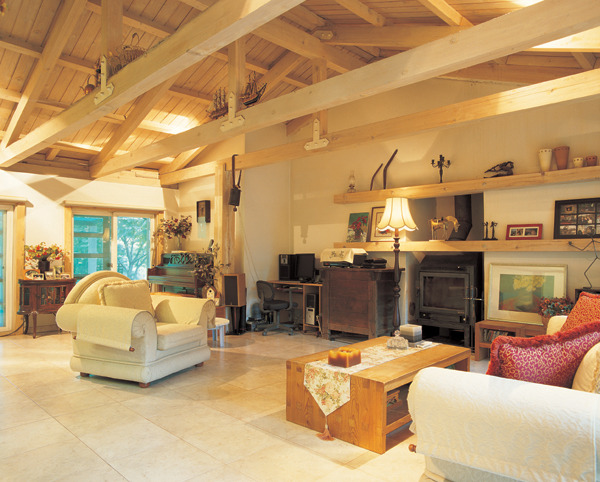 천장은 별도 마감 없이 지붕경사가 그대로 드러나도록 했으며 홍송을 일일이 결구 방식으로 짜 맞춰 아늑한 분위기를 연출했다.