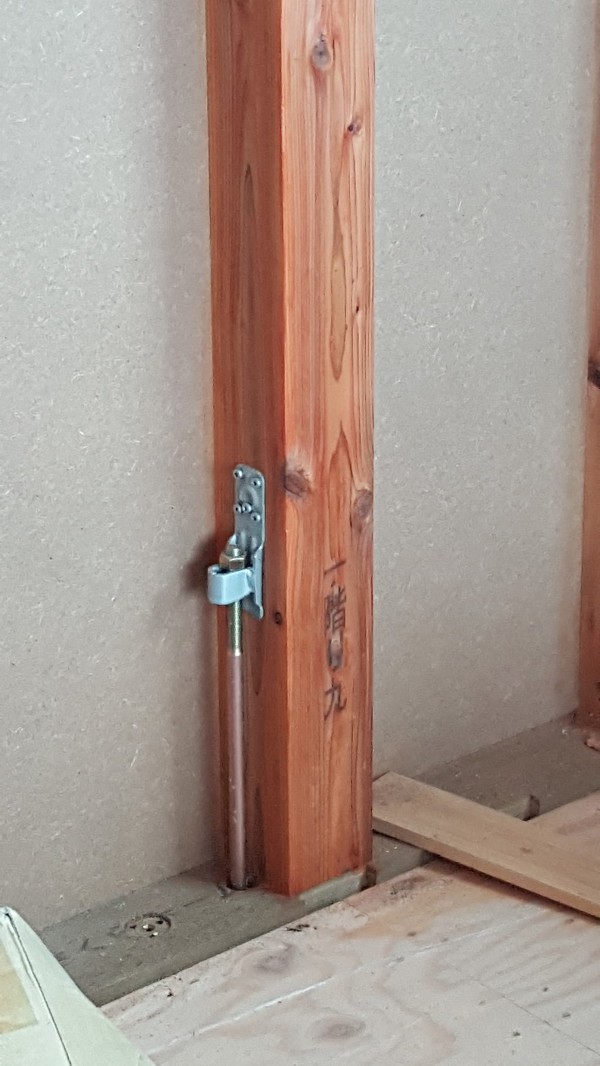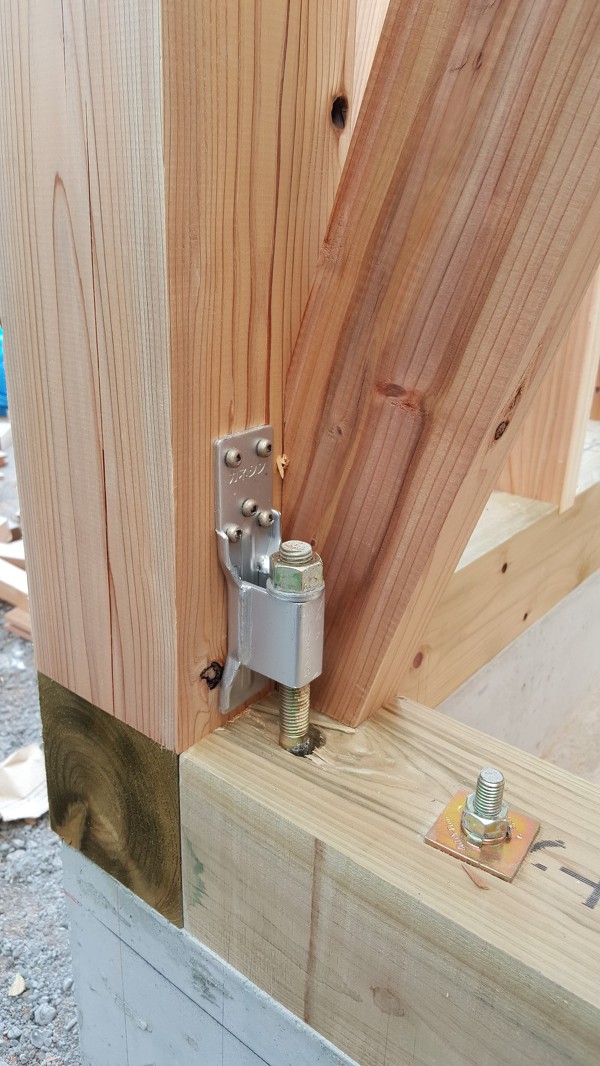기둥과 토대를 고정하기 위해 연결하는 철물로 기둥이 인장력에 의해 뽑히는 것을 방지하는데 목적이 있습니다.