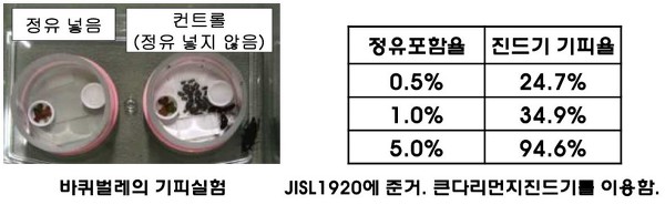 일본건축학회가 만든 '건축재료용교재'에 따르면 삼나무의 방충성은 편백나무와 함께 '중' 정도로 분류됩니다. 하지만 미야자키현에서 자라는 삼나무의 경우 다른 지역의 삼나무에 비해 정유를 더 많이 함유하고 있어 바퀴벌레, 괄태충, 흰개미, 진드기 같은 각종 해충을 막을 수 있습니다. 삼나무가 함유하고 있는 정유는 사람들에게는 은은한 향을 풍겨 아로마테라피에 사용되기도 하지만 해충의 경우 이 향기를 극도로 피하기 때문에 방충성능이 뛰어납니다.