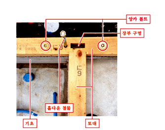 토대와 기초를 하나로 결합하는 연결철물로 앙카볼트는 토대와 토대의 조인트 부분에 사용됩니다.