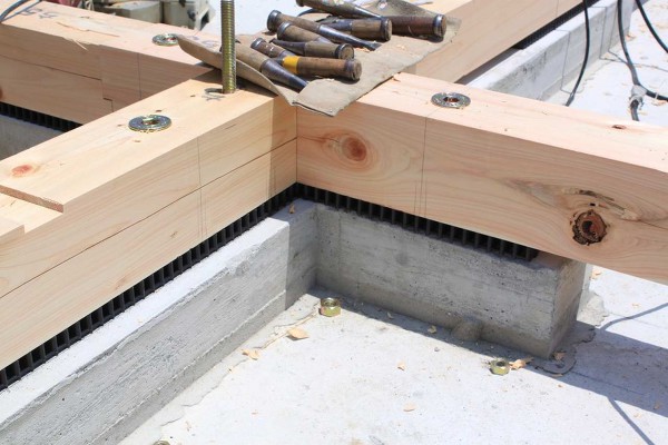일반적으로 다른 건축구조와 기초를 잡는 방식은 동일하지만 콘크리트 타설 후 기둥이 받는 힘을 기초로 제대로 전달하고, 기초면과 기둥을 결합시키기 위해 앙카볼트와 홀다운 철물을 설치합니다. 장비야놀자 휴홈은 목재뿐만 아니라 앙카볼트와 홀다운 등 일체의 부자재를 일본에서 직수입해, 프리컷 목재의 규격에 맞게 사용하고 있으며, 국내 다른 중목구조와는 비교할 수 없는 인장강도와 접합력을 보유하고 있습니다.