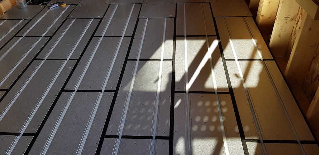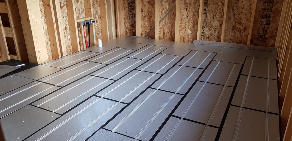 건식 온수온돌 판넬은 홈사이에 끼워 배관을 하고 보일러와 연결하여 온수가 돌면서