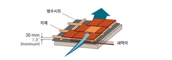 그림과 같이 세로상 위에 기와 고정을 위한 가로상을 시공하게 되는데