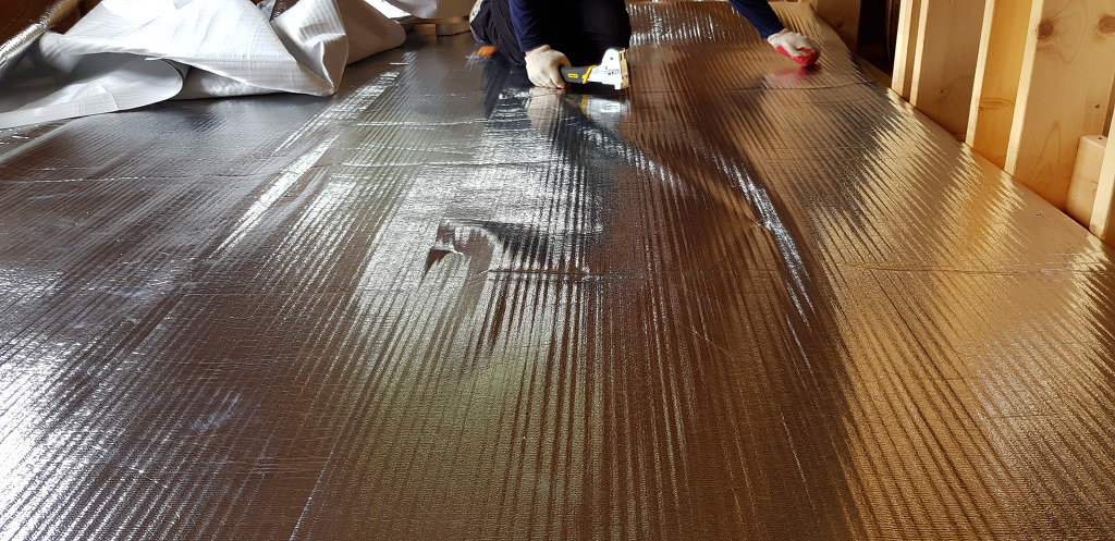 2층 건식난방의 시작은 열반사지 시공으로 시작된다.