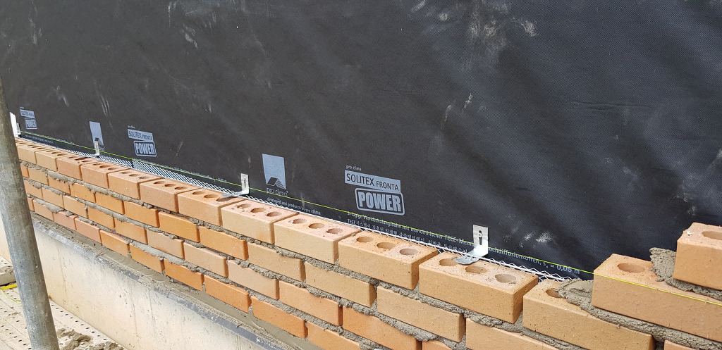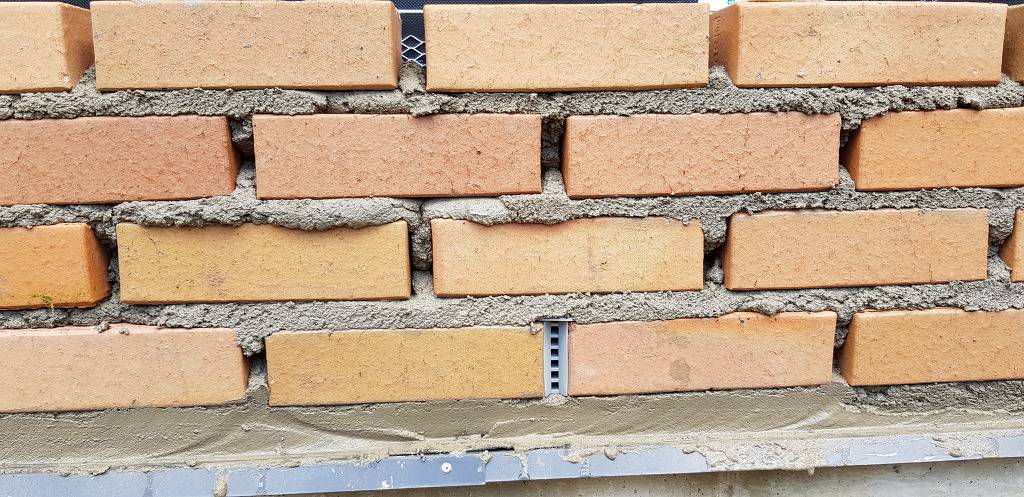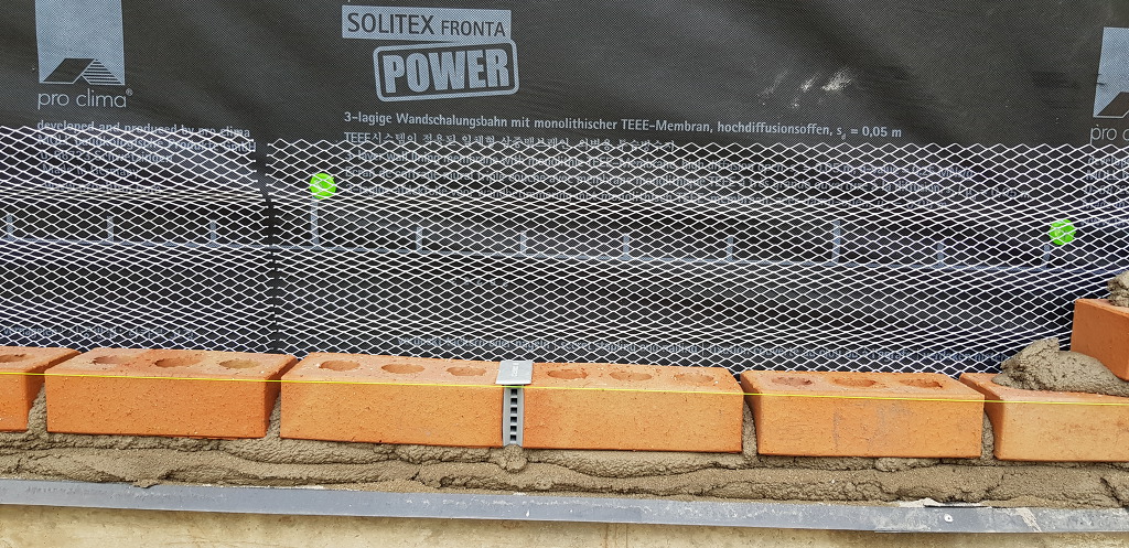 코드의 사진에는 보이지 않지만 몰탈망은 조적시 떨어지는 몰탈이 눈물구멍을 막는 것을 방지하기 위한 것이다.