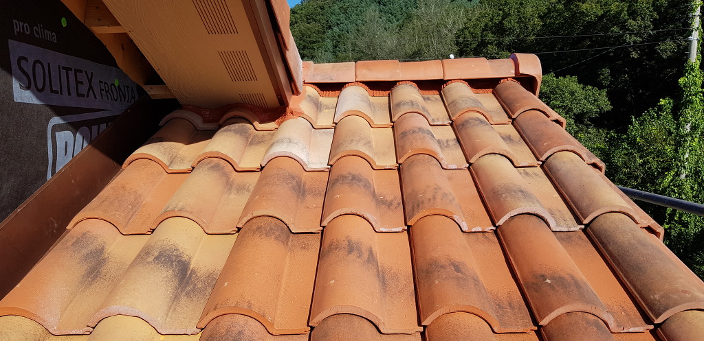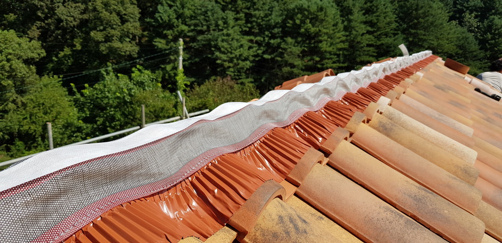 기와 내의 뜨거워진 열기를 낮추어줄, 통기로 용마루 벤트를 시공하고 있다.
