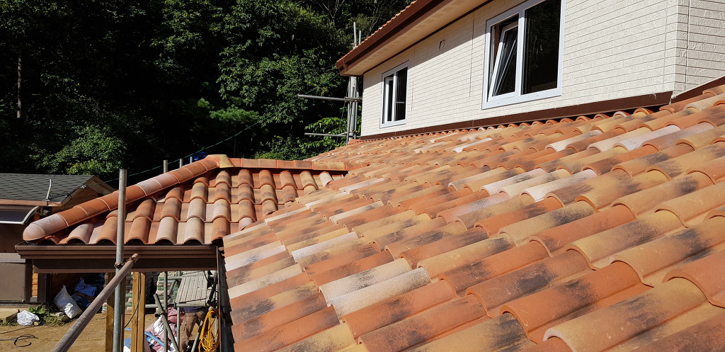 기와 시공에서 좌우 갓과 처마쪽 첫번째 줄, 기와의 고이 가장 중요한 기본법과 같은 것이다.