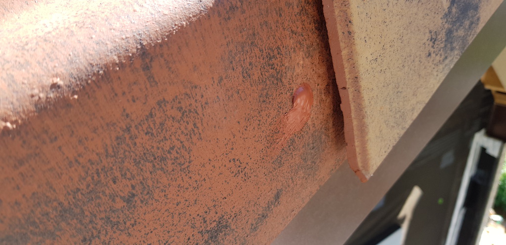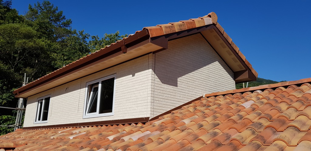 기와의 좌,우갓 피스 고정후 실란트 처리.