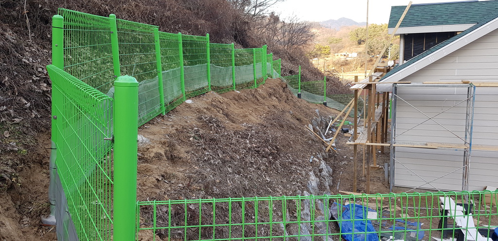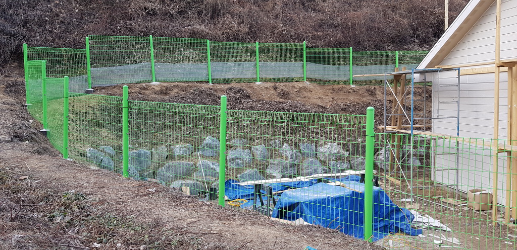경사가 심한 곳에 울타리 세우기가 쉽지는 않다.