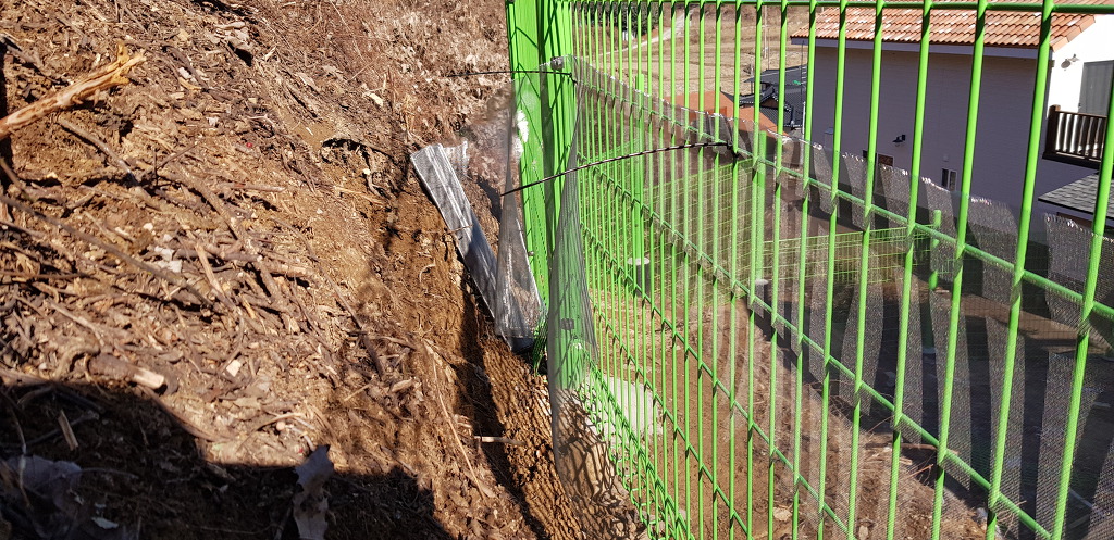 경사따라 휀스 설치후, 이번에 뱀망 설치를 하고 있다.