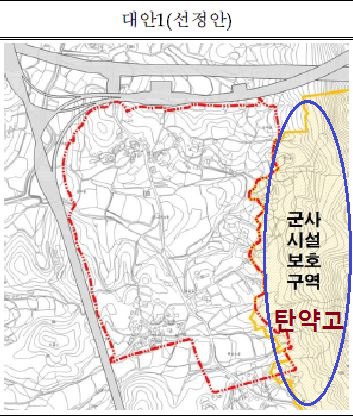 광명학온 공공주택지구 경계에는 군사시설인 탄약고가 있습니다.