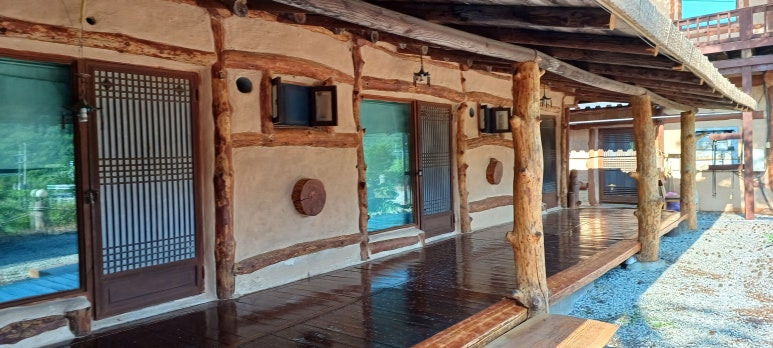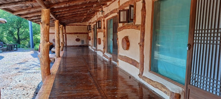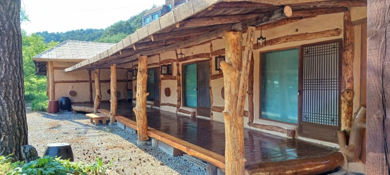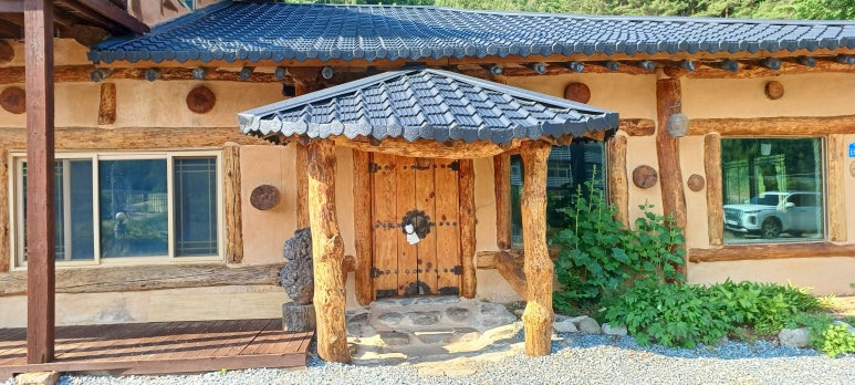 건강한 전원생활을 위한 친환경 통나무 황토흙집으로 전통적 예술관 분위기 건물