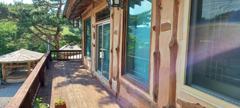 펜션앞 정자가 크기가 상당하여 여러명이 파전에 막걸리 한잔 기우릴수있는 공간이 됩니다