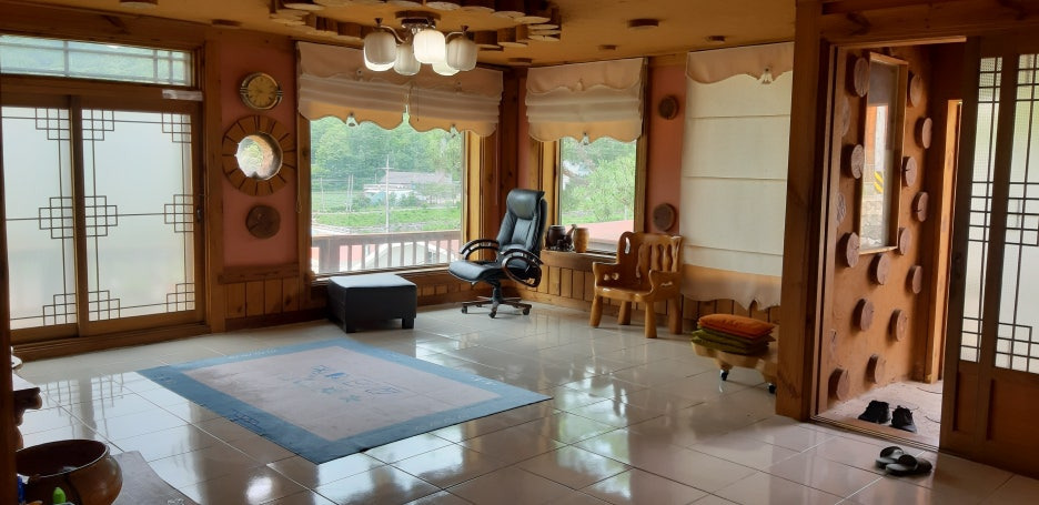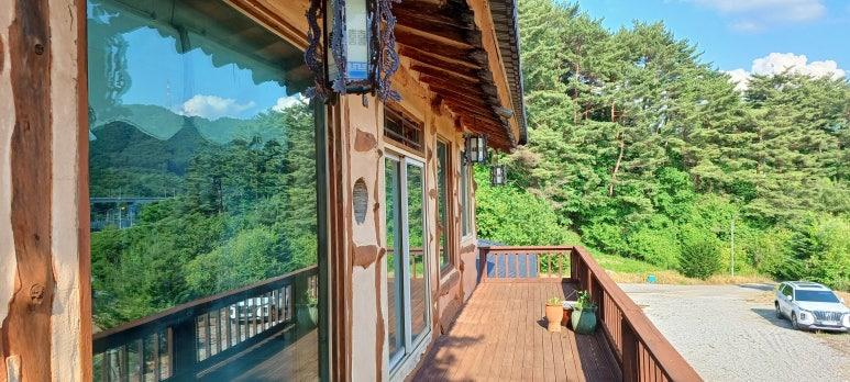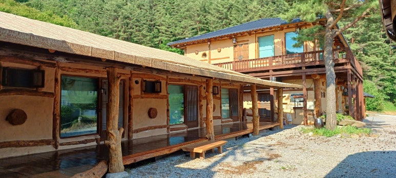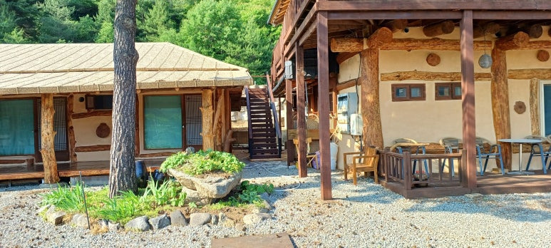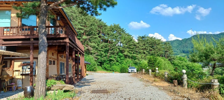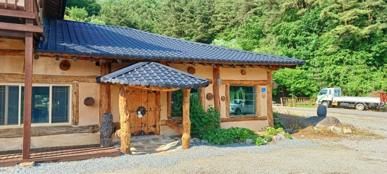 평창 예술관 분위기 통나무 황토흙집 -전원카페 음식점 +펜션 +전원주택