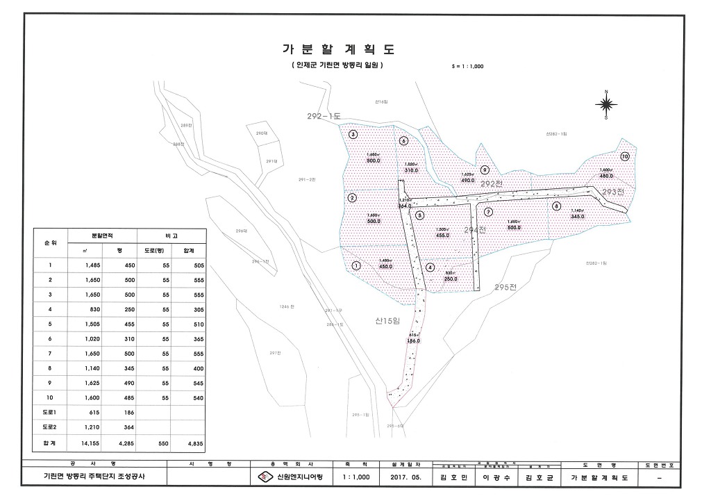 1. 소 재 지 : 인제군 기린면 방동리 (방태산 휴양림 주변) 2. 지 목 : 임야 및 전 3. 용 도 : 계획관리지역 4. 면 적 : 300평 / 도로포함 (6,850평 중 분할) 5. 도 로 : 6M 도로 6. 매 매 가 : 평당 25만원 (대출 시 매매가 60% 농협) 등록상호 인제 하늘내린 부동산 중개사 인제 하늘내린 컨설팅 사무소 등록번호 나 3740-11 223 - 02 - 45278 소 재 지 인제군 인제읍 내린천로 6581 (고사리 373-19) 대 표 김 철 주 전화번호 033) 461-3131 / 010-6388-9365 <입 지 여 건 > 마시며 산책을 할 수 있는 곳입니다. 산과 계곡을 좋아하시는 회원님들께서 주말주택 & 별장 & 전원주택지 & 펜션 및 투자 용지로도 알맞은 곳이며 향후 지가상승이 많이 기대되는 곳이며 토목공사는 협의 후 가능합니다. ▶ 인제 방태산이나 방태산휴양림을 클릭 해 보시면 많은 정보가 있습니다. 매매토지 앞 방태천 계곡 전경입니다. 방태천 가을 전경입니다. 매매토지 진입로 전경입니다. 매매토지 전경입니다. 매매토지 전경입니다. 매매토지 전경입니다. 매매토지 전경입니다. 매매토지 전경입니다. 매매토지에서 본 전경입니다. 매매토지 위성사진입니다. 매매토지의 가분할 계획도이며 수정이 가능합니다. 가분할 도면에서 4번은 건축 인허가를 받아 전체 토지 진출입에는 문제가 없습니다.