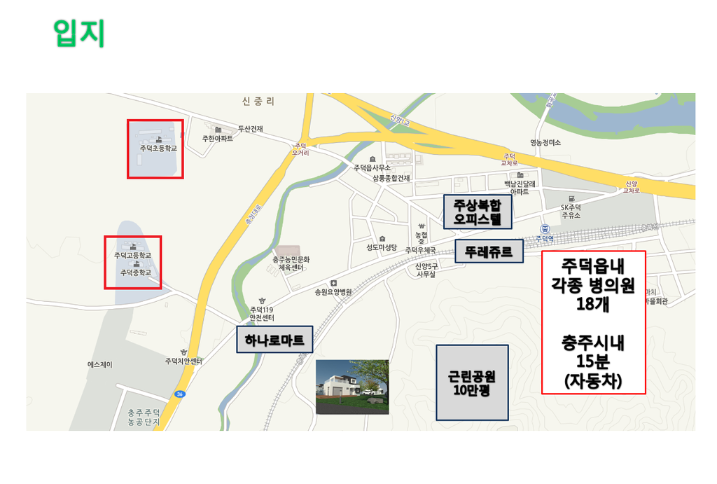 근린공원 및 주덕읍내 도보 5분거리(인근 초.중 학교 있습니다.)