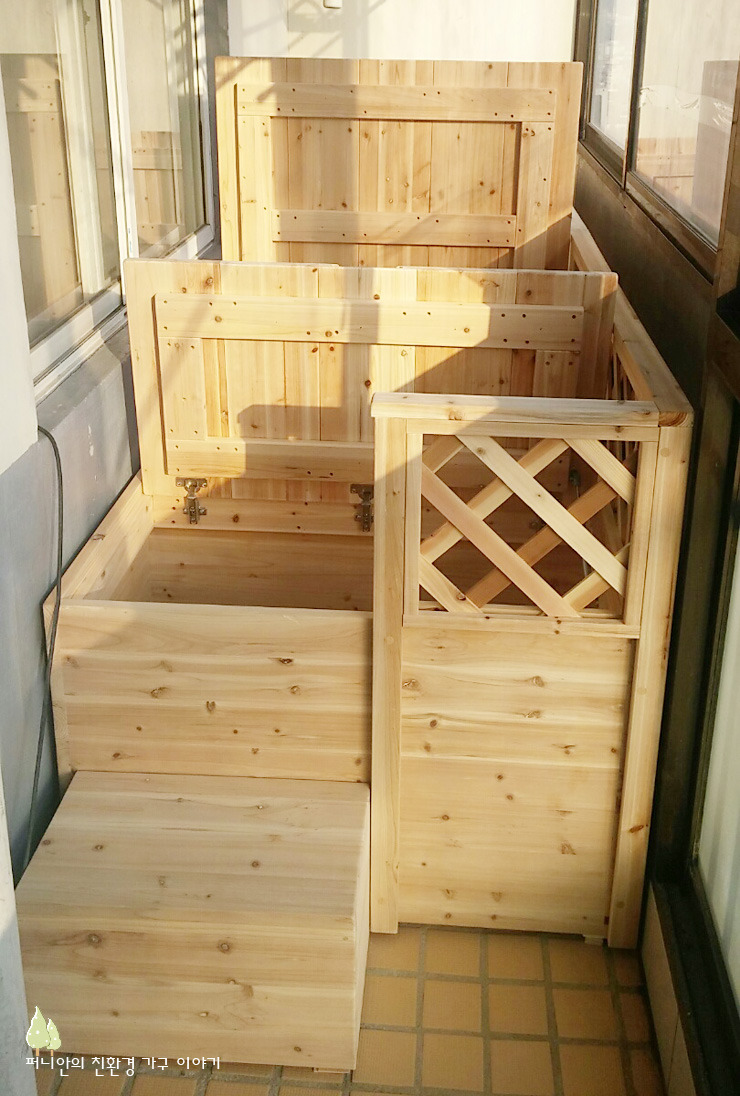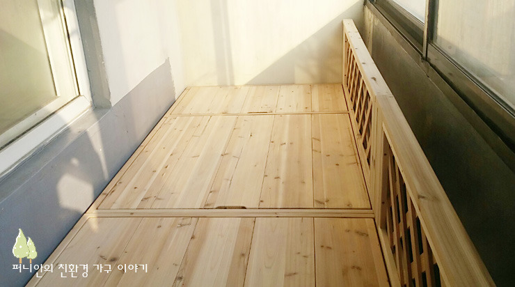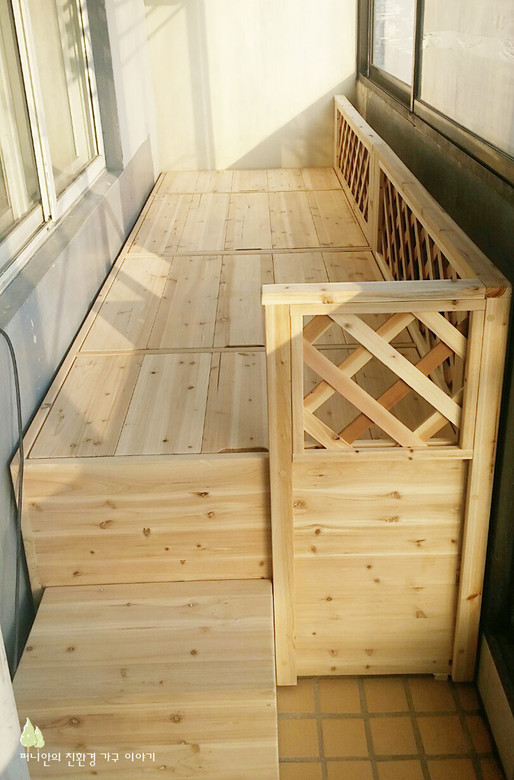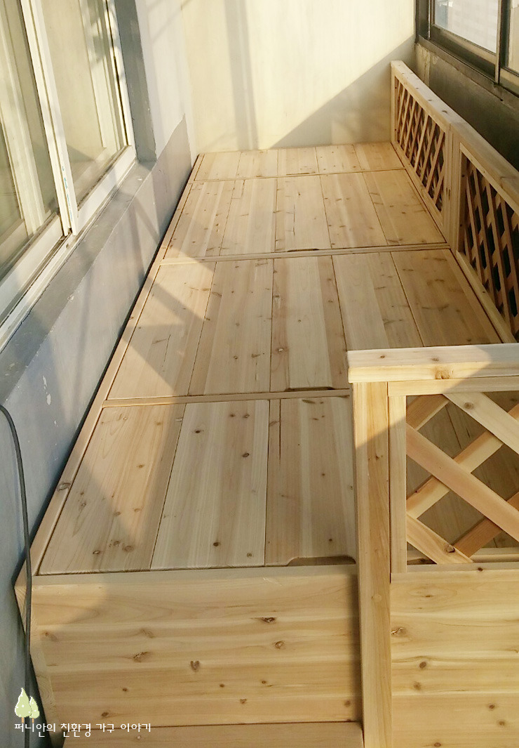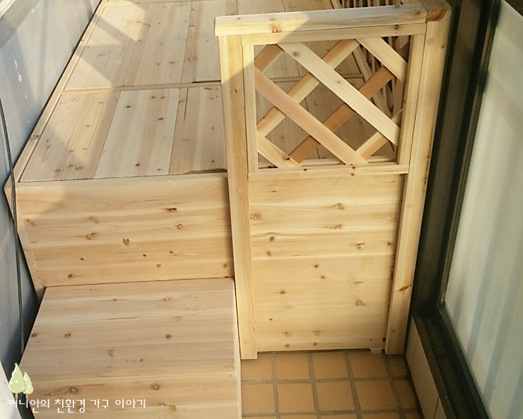 삼나무로 제작되었으며 베란다 사이즈에 맞추어 제작되었습니다.