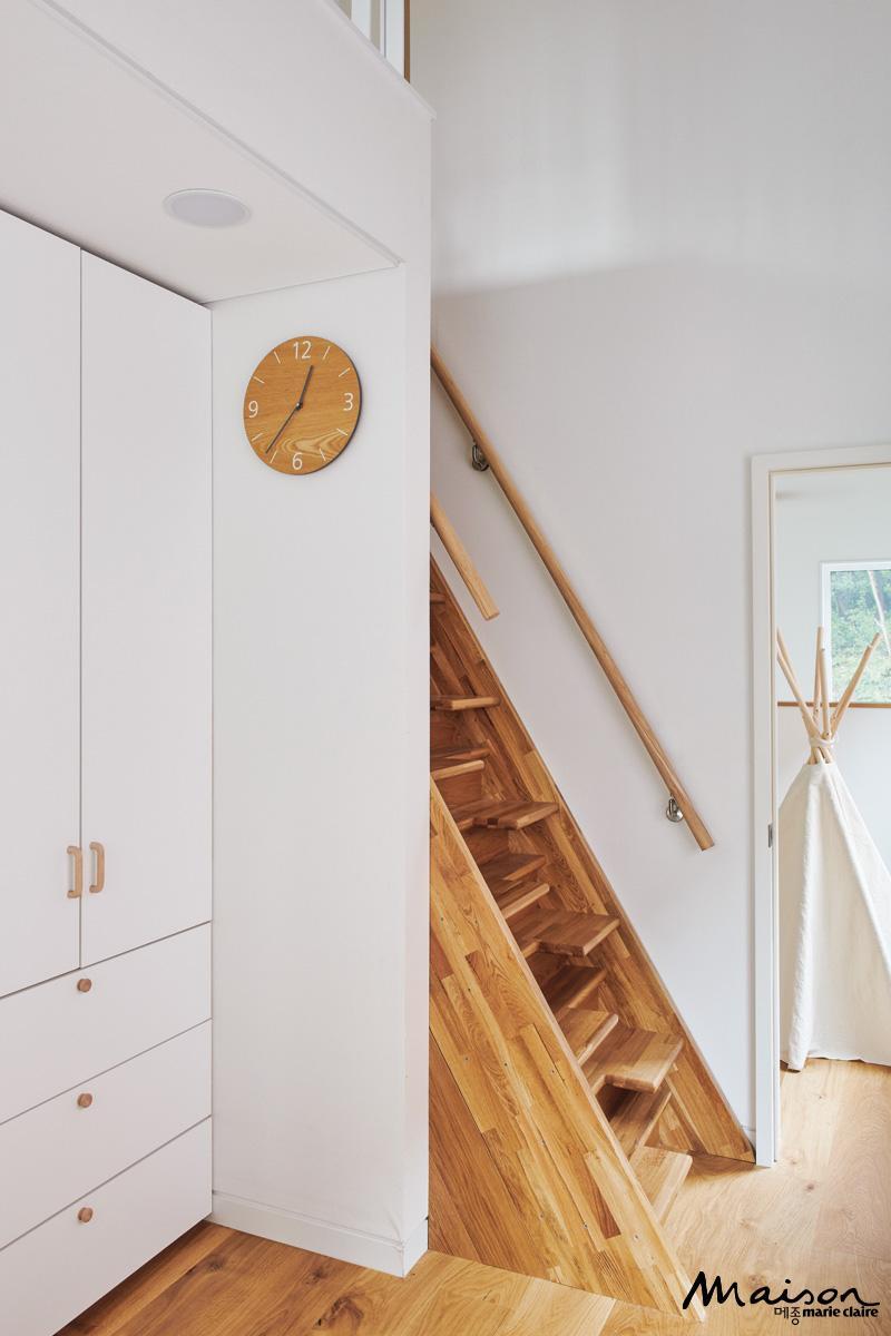 이 집에서 가장 공을 들인 곳은 단연 주방이다. “거실보다 주방에서 아이들과 함께 생활하는 경우가 더 많은 것 같아요. 주방 뒤 수납장에도 책이나 스케치북 등 아이들 물건을 넣어두니 필요할 때마다 손쉽게 꺼낼 수 있어서 좋아요. 저는 무엇보다 아이들이 집 안 구석구석 다니면서 생활하는 데 불편함이 없었으면 했어요.저도 남편도 요리를 좋아해서 우리 부부가 가장 많은 시간을 보내기도 하고요.” 2층 오른쪽으로는 아이들 놀이방과 많은 아이들의 로망인 다락방이 있고, 왼쪽으로는 욕실과 안방이 자리한다. “밤이 되면 모두 2층으로 올라가 놀고 그러다 안방에서 다 같이 자기도 해요. 아이들이 아직 어려서 침실을 따로 만들지 않았지만, 앞으로 큰아이의 침실은 마련해주려고요.” 이 집으로 이사하기 전 아내는 동네가 한적하고, 단독주택이다 보니 또래 아이들이 없으면 어쩌나 하는 걱정을 했다. 하지만 그런 우려와 달리 다둥이를 둔 가정이 많아 아이들이 서로서로 편하게 드나들며 함께 어울리고, 이웃끼리의 관계도 원만하다고 말했다. 이혜민 씨는 단독주택을 꿈꾸는 다른 다둥이 가족 역시 그 꿈을 이룰 수 있기를 응원한다고 전했다. 가을과 겨울이 지나고 활짝 핀 벚꽃으로 가득할 이 집의 봄날이 그려졌다.