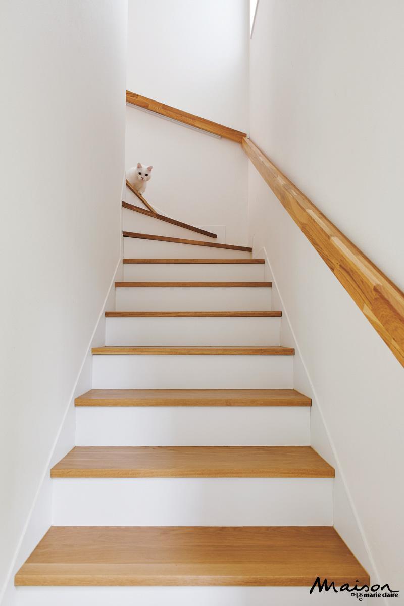 2층으로 올라가는 계단. 고양이 구름이가 빼꼼 고개를 내밀고 있다.