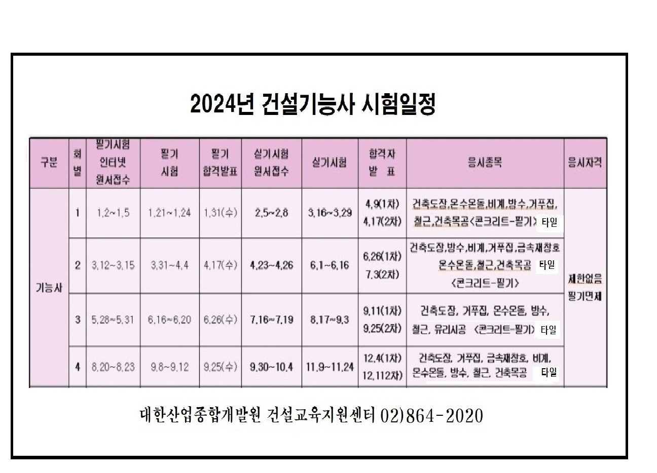 거푸집기능사 뿐만 아니라 건설분야 기능사 방수기능사 , 철근기능사