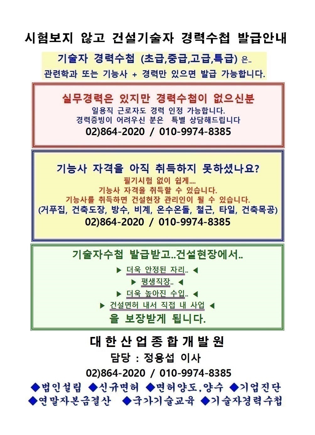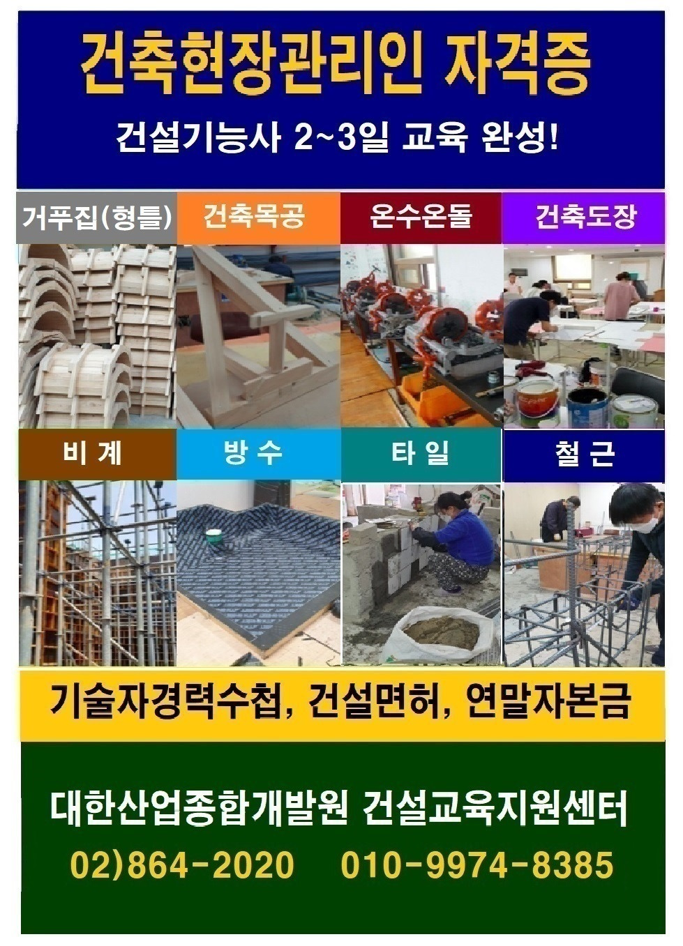 조적기능사 ,건축도장기능사(페인트), 금속재창호기능사, 콘크리트기능사 등 건설기능사 전문 교육으로 합니다.