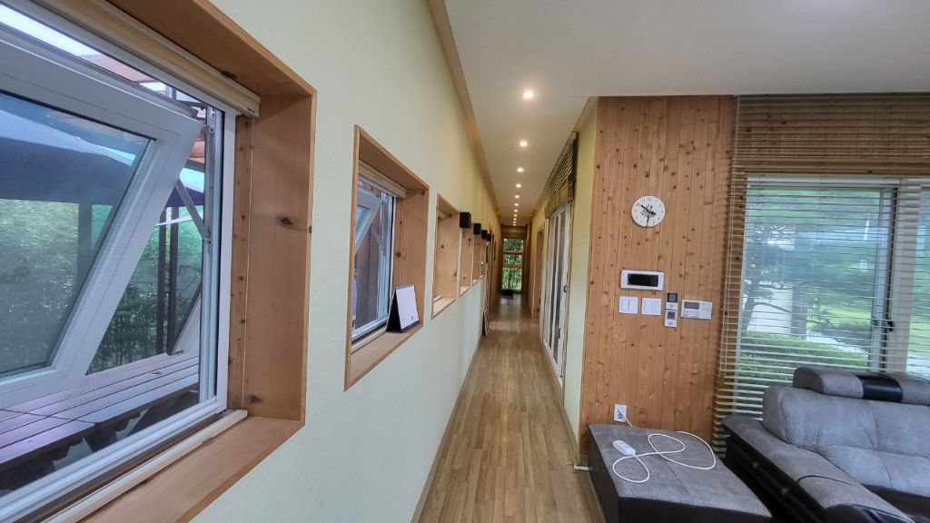 건축시 일조량이 가장 많은 2시 방향(남남서)으로 방, 거실, 주방 등을 전면 배치 설계하여 겨울철에도 햇살이 집안 깊숙히 들어와 난방비가 많이 절약되며, 주차장에 설치되어 있는 태양광(3kw)설비는 매월 몇만원의 전기료를 절감해주고 있습니다.