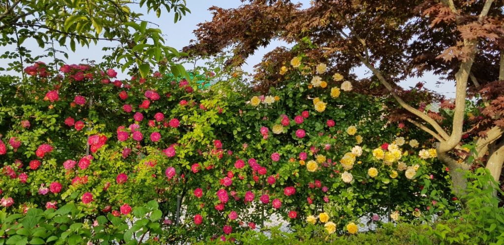 3월부터 11월까지 정원에는 수많은 종류의 꽃들이 피고지며, 해마다 4~5월이면 정원 전체가 꽃대궐로 장관을 이룹니다. 건물 뒤 경계 50m로 식재된 고급 독일 사계덩쿨장미(7종)가 피는 오유월이면 또한 장관입니다.