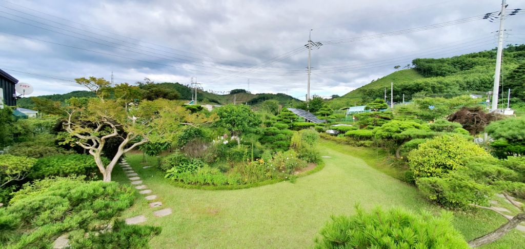 골프장 잔디처럼 잘 관리된 수백평의 잔디밭이 있으며, 한그루당 수천만원하는 고가의 가브리소나무와 용송 등 소나무 36그루, 수많은 관목과 화목류, 유실수, 꽃 등이 식물원처럼 식재되어 멋지게 가꾸어져 있습니다. 또한 건물 뒤와 텃밭에는 수십 그루의 결실 유실수(9종)가 식재되어 있어 과일 자급자족은 물론 복숭아, 대봉감, 단감, 대추, 매실, 사과, 자두 등은 많은 이웃들과 나눔할 수 있을 정도로 수확량이 많습니다.
